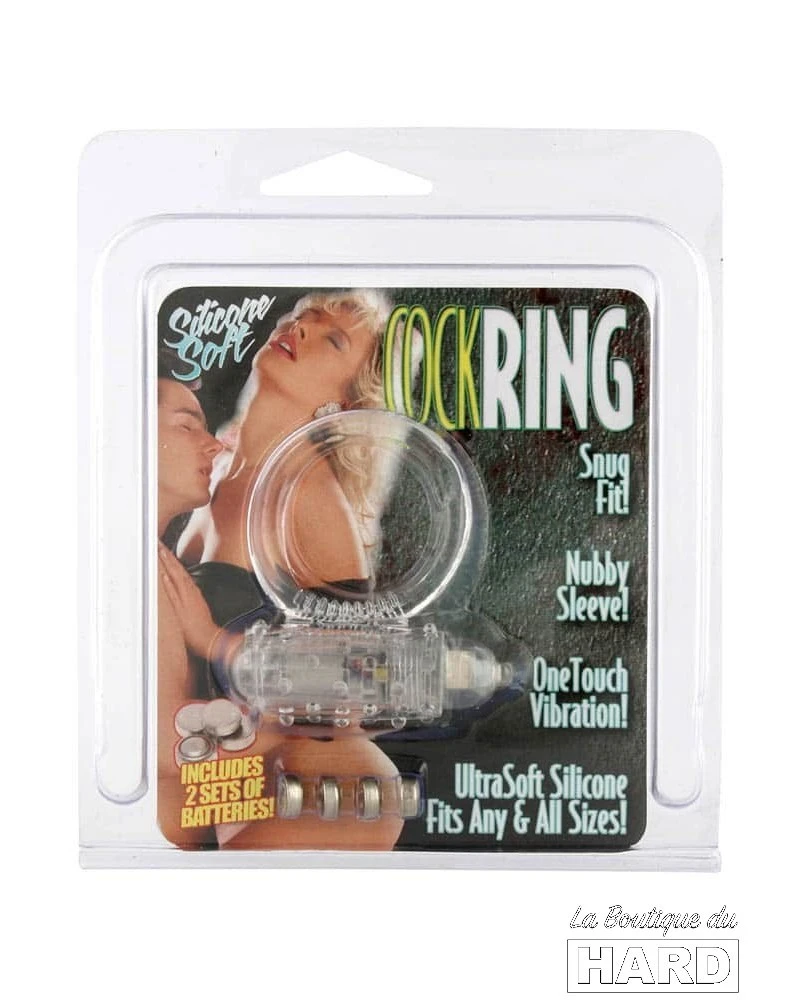 Anneau vibrant en silicone transparent avec un diamètre de 3.5 cm qui offre à ses utilisateurs des sensations uniques. Il se place comme un cockring pour stimuler les deux partenaires lors de la pénétration. Sa matière souple et flexible permet¬† un ajustement à toutes les tailles de pénis. L’anneau vibrant fonctionne avec des piles dont 2 lots vous sont offerts.