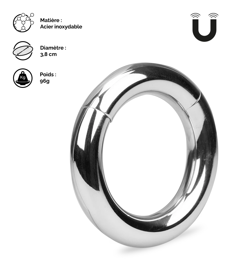 Cet anneau en acier inoxydable possède une ouverture magnĂ©tique très simple d’utilisation, permettant de l’ouvrir et le fermer sans la moindre difficultĂ©.