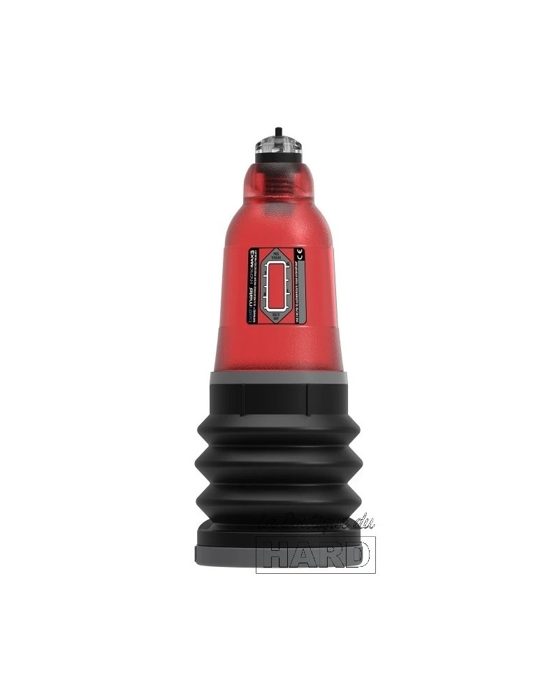 La pompe à pénis Hydromax 3 utilise une technologie innovante à base d’eau et de mouvements de succion pour rendre le pénis plus volumineux.Augmentation en volume et en épaisseur. Recommandée uniquement pour les sexes jusqu’à 8cm en érection La pompe Bathmate HydroMax comporte un système de succion hydraulique qui assure une efficacité optimale et un résultat important.Cette version de la pompe à pénis est composée de:un système à soufflets performant qui rend l’utilisation plus confortable et plus facile. Moins d’effort pour plus d’efficacité et de puissance à la succion un « coussin d’air » qui permet une bonne aspiration et une étanchéité optimale entre le corps et l’intérieur de la pompe Bathmate le système hydraulique avec une vanne de remplissage et de vidage de l’eau un guide de mesure sur la surface pour voir l’évolution de l’augmentationLa pompe HYDROMAX permet de:Augmenter le flux sanguin, la santé et le bien-être sexuel Améliorer la taille et la dureté de l’érection.Conseils d’utilisation:Usage régulier (10 à 15 minutes par jour). Les résultats peuvent être visibles en 6 semaines, autant en longueur qu’en épaisseur de sexe Manier avec précaution, sans forcer