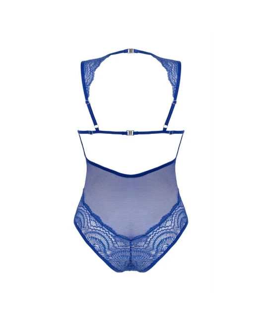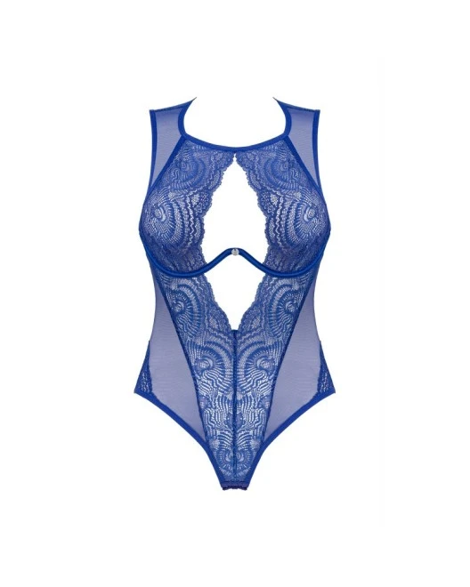 Teinté d’un bleu hypnotique et somptueux, le body à armatures « Giselia » promet une ligne sculpturale dont la beauté sera soulignée par une découpe graphique irrésistible.