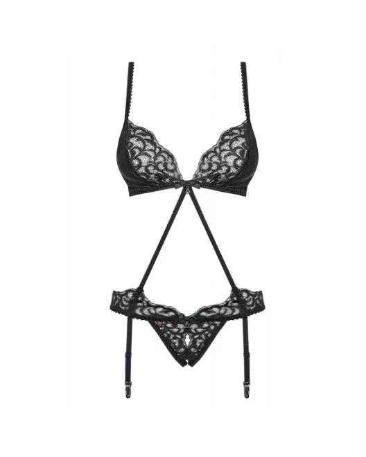 – 2 pièces en 1 : 1 soutien-gorge, 1 culotte fendue et des bretelles amovibles pour créer un body porte-jarretelles