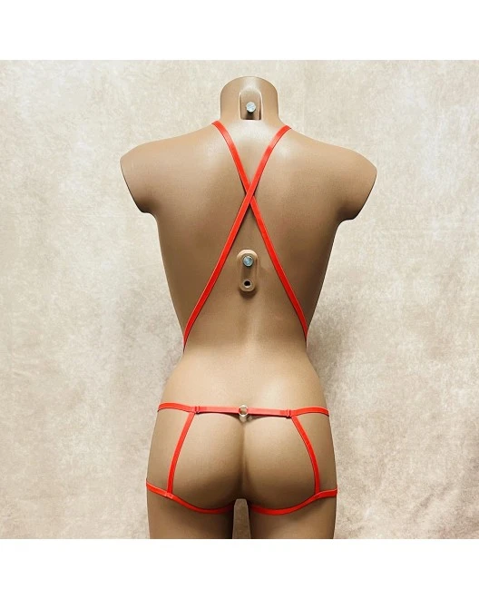 Laissez vos courbes féminines s’exprimer avec audace à travers le body shorty ouvert sur l’intimité, où des brides extensibles au fort pouvoir de séduction enserrent vos courbes.