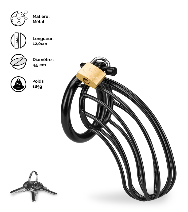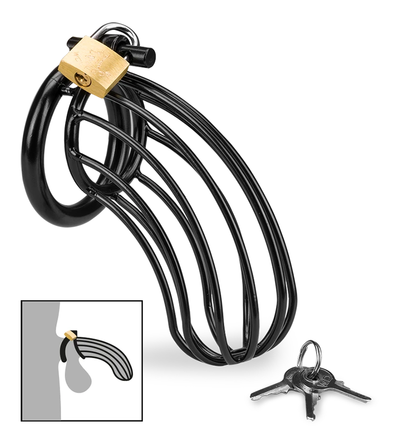 Si vous avez du mal à maitriser vos pulsions ou que vous souhaitez simplement découvrir les plaisirs de la frustration, cette cage est faite pour vous. Sa forme courbée empêchera les érections complètes et les rendra particulièrement inconfortables. Elle est idéale à porter sur de longues durées grâce à ses barreaux fins qui permettent une bonne aération et vous permettront d’uriner sans avoir forcément besoin de sortir de la cage. Ce modèle long sera adapté aux hommes qui possèdent un grand pénis au repos.
