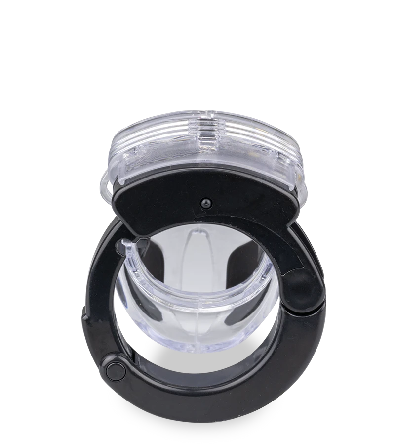 2. Ajustez la taille du cercle noir grâce à ses 6 crans puis bloquez-le avec la plaque transparente à tige noire
