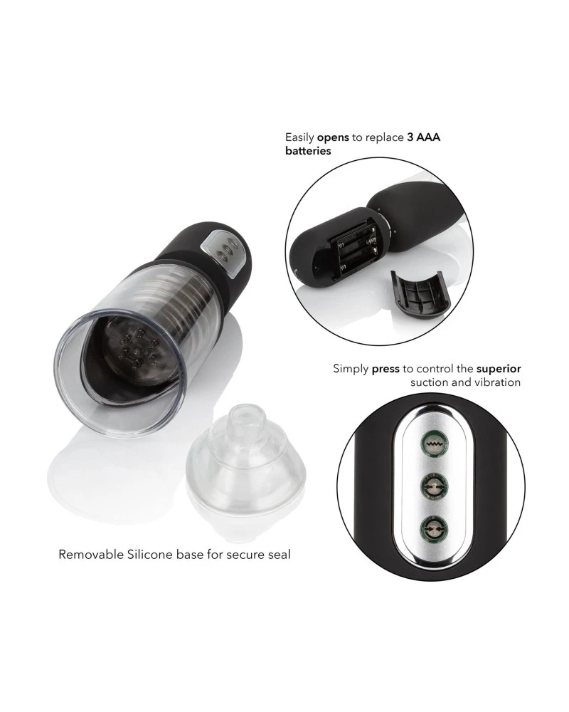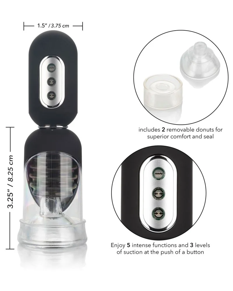 Cet accessoire de la marque Optimum Series est une pompe pour le gland. Elle permet de stimuler l’extrémité du pénis et d’obtenir des sensations très intenses.Avec un cylindre de 12 x 6cm et une surface intérieure souple et texturée.Avec 5 rythmes de vibrations et 3 modes de succion. Fonctionnement avec 3 piles AAA (non fournies)