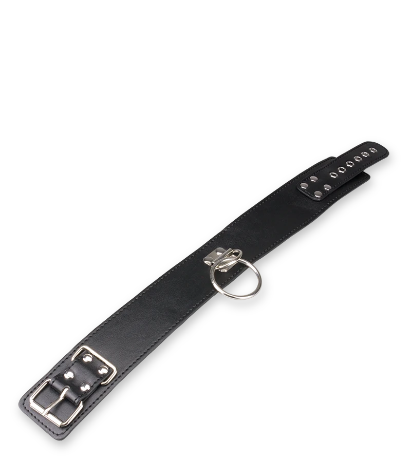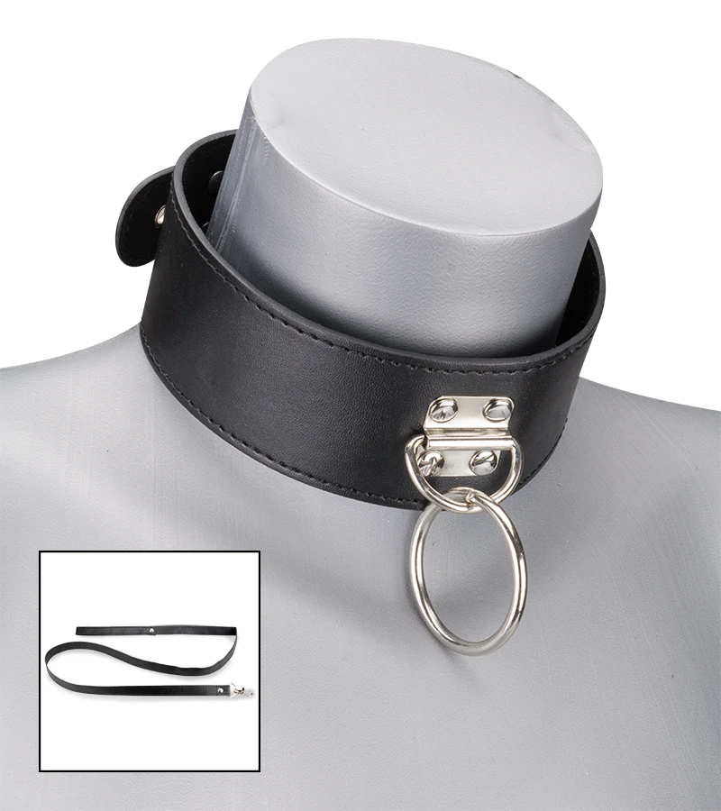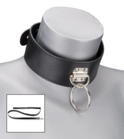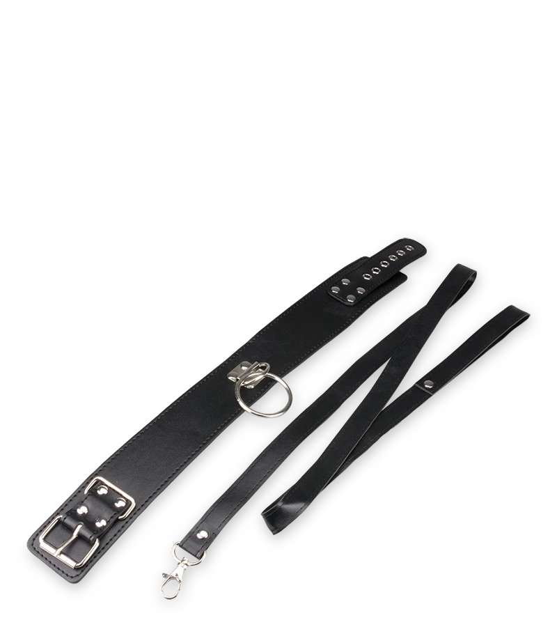 Doté d’un gros anneau bondage métallique pour y attacher la chaîne en métal, ce collier de soumission en similicuir sera parfait pour tenir en laisse votre soumis(e) pour des jeux SM (soumission, punition, etc). Et pour pimenter, nous vous conseillons d’y ajouter un accessoire bondage, menottes, contrainte ou fouet. Le collier fait 49,0 cm de long et 4,8 cm de large. La laisse fait 115,5 cm de long et 1,7 cm de large.