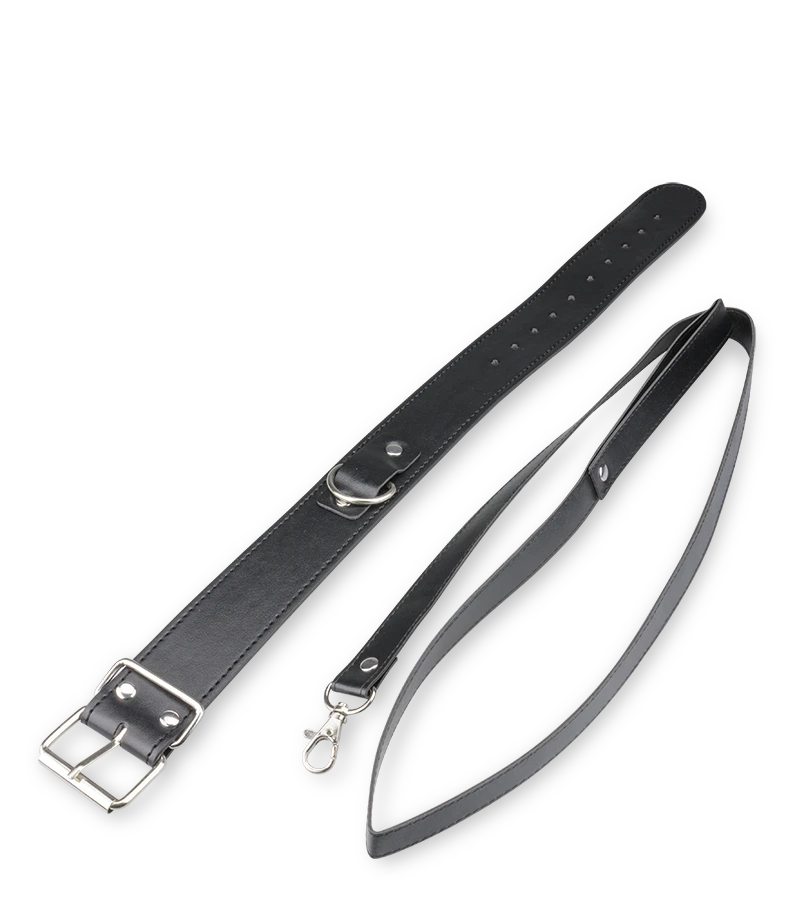 Soumettez-vous ou soumettez votre partenaire de jeux BDSM grâce à ce collier et cette laisse en cuir BDSM.