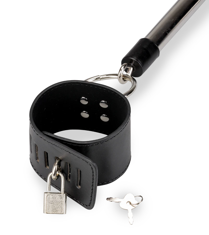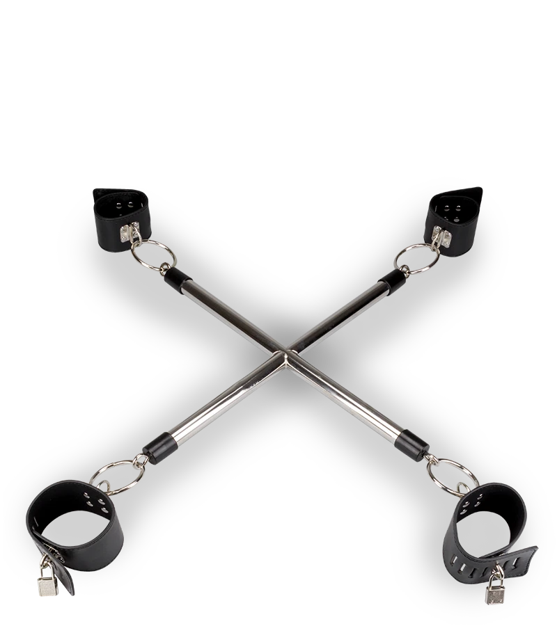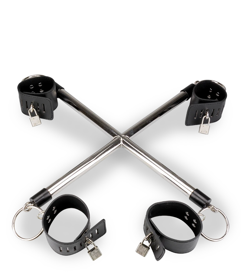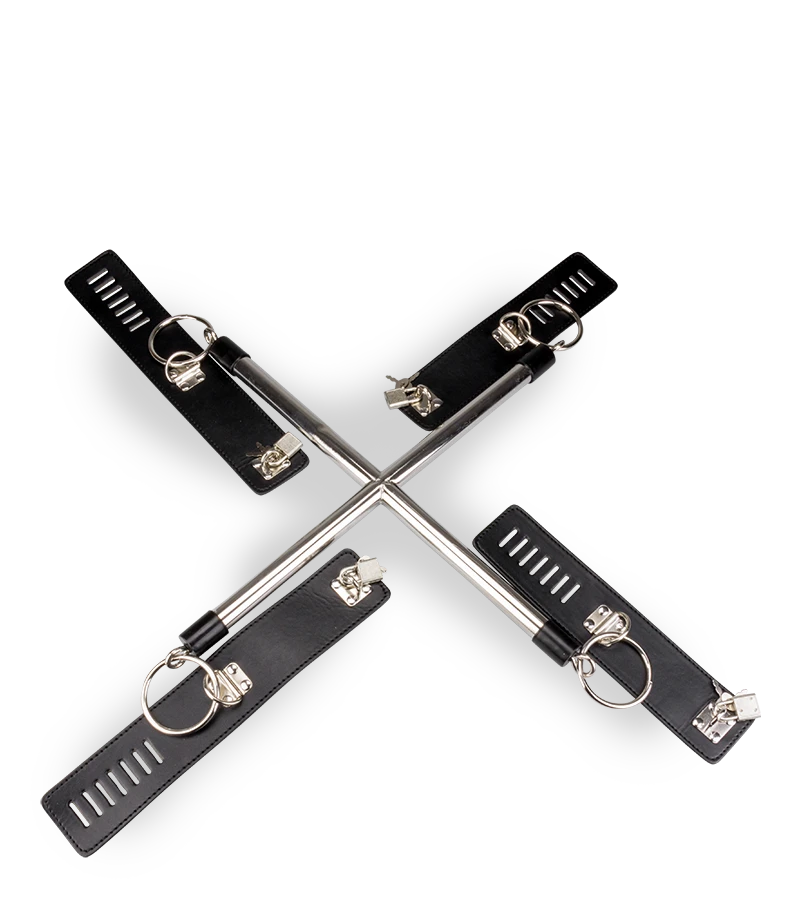 Cette contrainte BDSM en croix positionnera le soumis sur le ventre ou sur les genoux en lui entravant poignets et chevilles. Chaque entrave se verrouille à l’aide d’un cadenas. Pour la panoplie parfaite, vous pouvez aussi opter pour un gag-ball bâillon de bondage à faire porter par le soumis ou la soumise. Il est livré avec 4 cadenas et 4 jeux de 2 clés. Chaque entrave fait 29,7 cm de long et 5,5 cm de large. L’espace entre chaque entrave est de 40,0 cm.