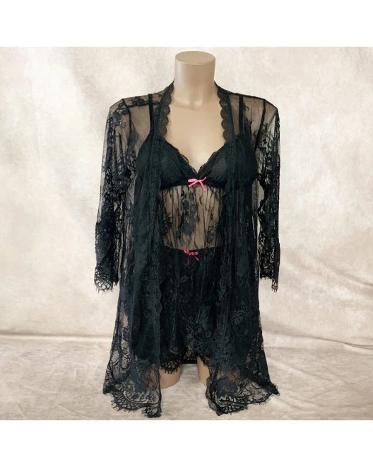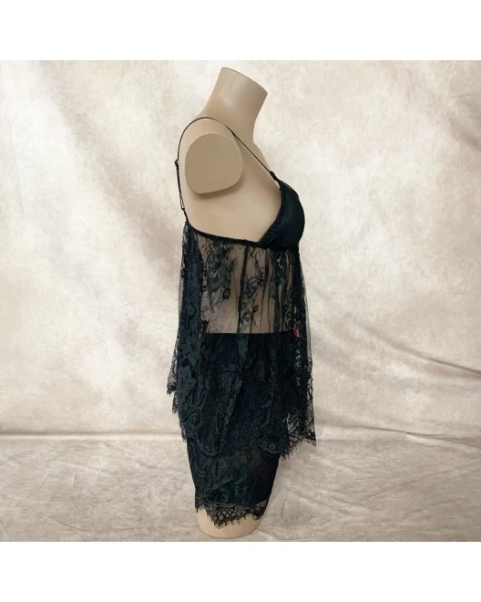 Pour créer une parure de charme enchanteresse, portez la nuisette avec le short en dentelle assorti, ainsi que le kimono irrésistible pour un effet déshabillé dévastateur et torride à souhait.