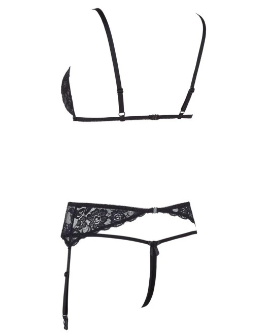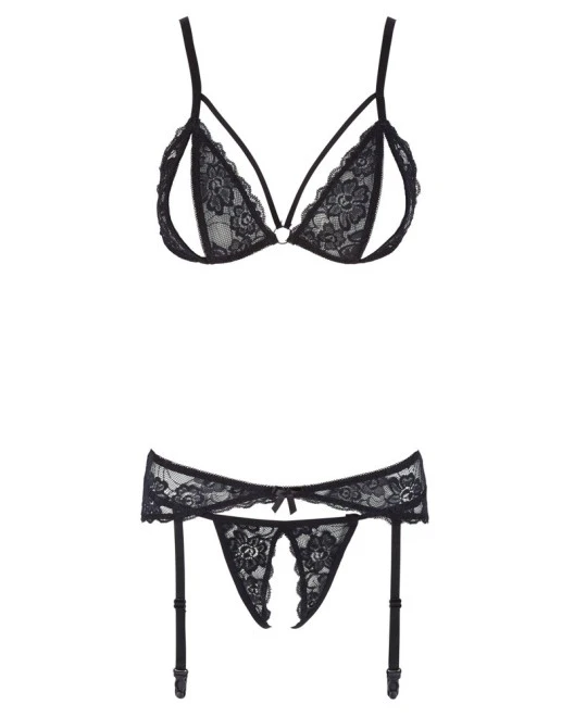 – Comprend: Un soutien-gorge ouvert, un string ouvert, un porte-jarretelles assorti.