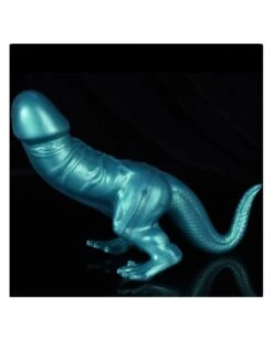 Le gode Dicknosaur est conçu avec une forme de dinosaure originale.Il est composé d’une longueur insérable de 12cmet d’une largeur maximale de 4.8cm Avec une queue de dinosaure, des pattes et de grosses testicules. Il est fabriqué en silicone avec une couleur turquoise. Longueur totale : 26cm. Attention : Il ne tient pas sur ses pattes