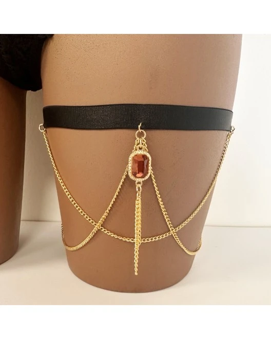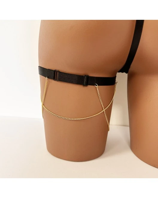 En guise d’ornementS, des chaînettes dorées magnifient majestueusement votre jambe, en retombant sur celle-ci en cascade dans un rendu visuel qui saura capter les regards.