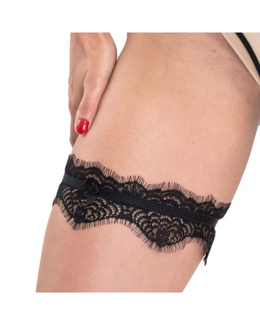 Une bride extensible noir opaque habille la dentelle et orne votre cuisse avec sensualité sans marquer la peau.