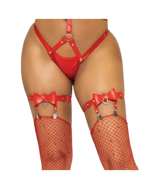Portez ces jarretières sensuelles avec le body harnais assorti en version rouge ou noire, pour créer une panoplie coquine et harmonieuse qui saura mettre vos atouts féminins en valeur.