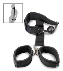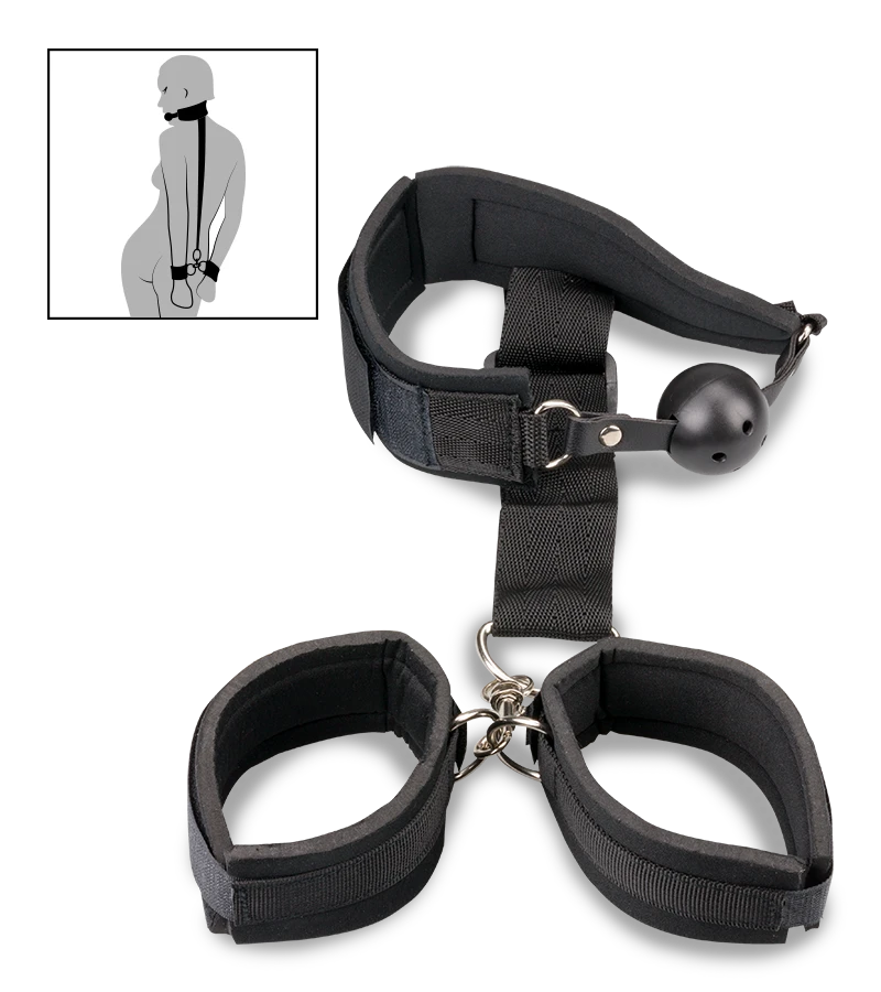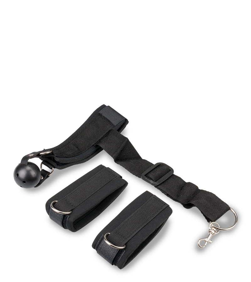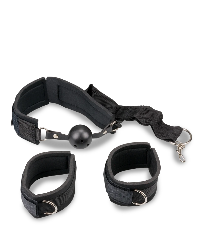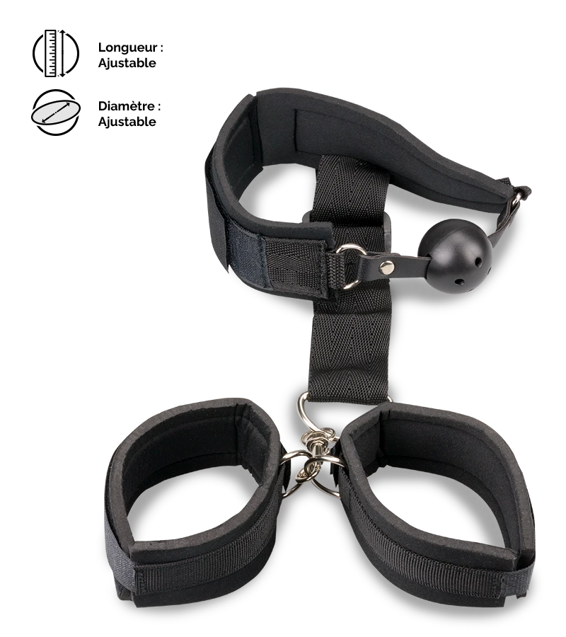 Soumettez-vous à votre partenaire et à la puissance du kit soumission gag ball et menottes !