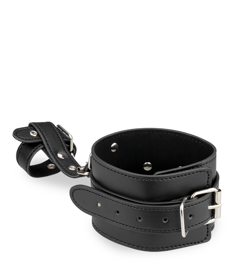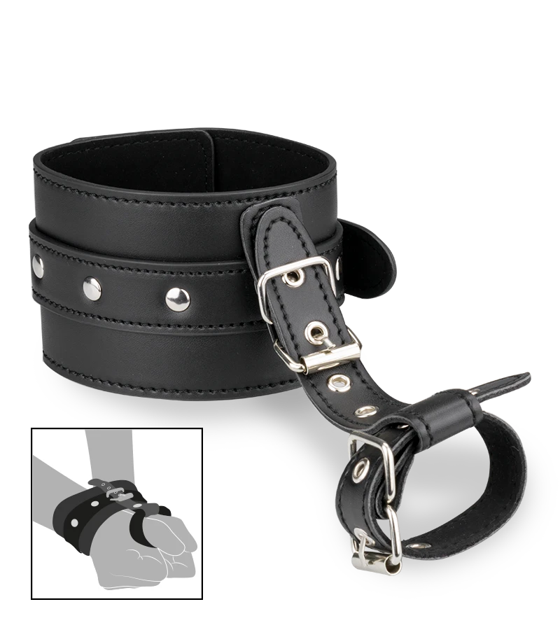 Empêchez le moindre mouvement des mains de votre partenaire grâce à cette contrainte SM composée d’une menotte très solide en cuir qui viendra immobiliser les mains du soumis.
