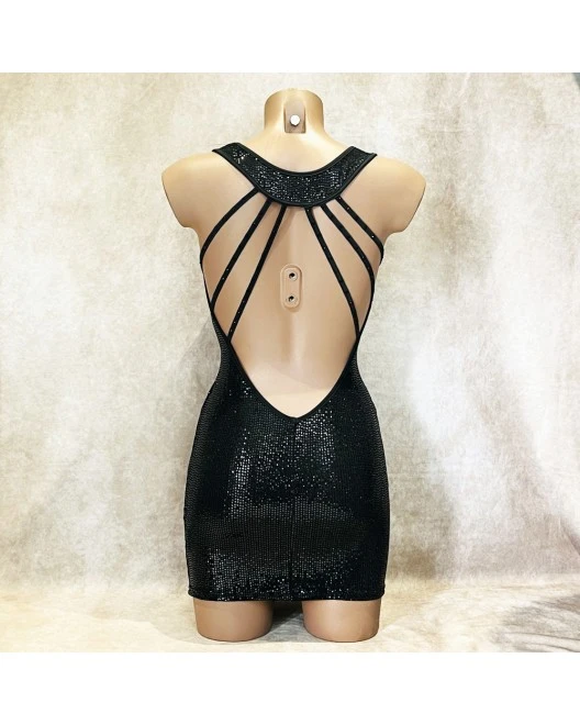 L’arrière de la mini robe irrésistible déploie un jeu de brides venant sublimer la cambrure, tout en libérant sa nudité afin d’offrir un spectacle captivant.