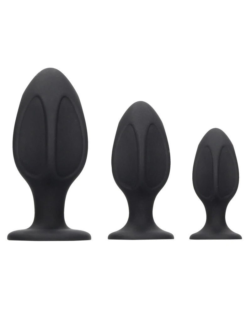 Voilà 3 plugs en silicone de la marque Ouch! idéals pour des moments délicats et plaisants. Ils permettent de rendre les préliminaires excitants et de procurer des sensations excitantes.Chaque plug est conçu avec une surface lisse et un léger relief (style diamant) et une ventouse. Dimensions : 5 x 2.8cm, 6.5 x 3.5cm et 8.5 x 4.5cm