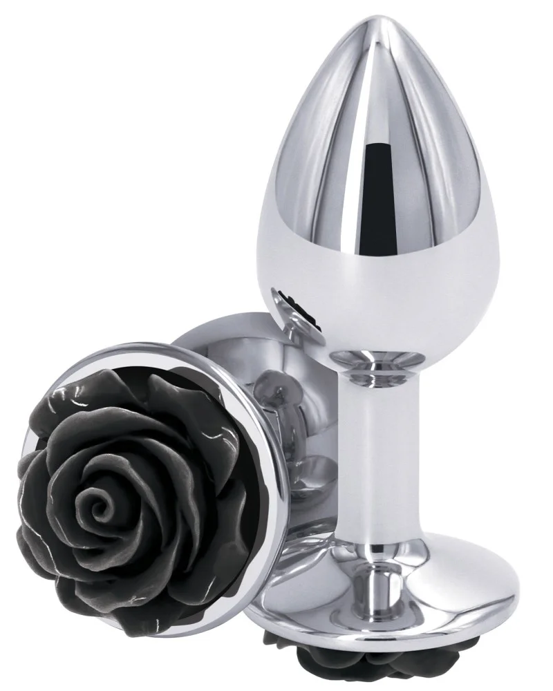 Ce plug bijou argenté est un sextoy conçu pour mettre en valeur l’anus. Il possède un bijou en forme de rose noire.La longueur insérable est de 6cm. La largeur est de 2.7cm. En aluminium