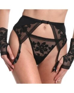 Un empiècement en résille se joint à la lingerie sexy afin de voiler la nudité d’une transparence divine, ornée de fleurs brodées et délicates.
