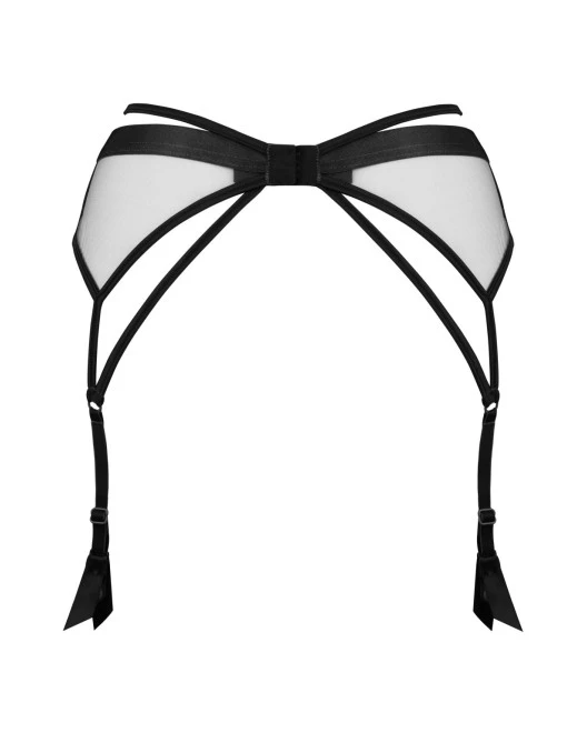 Un jeu sensuel composé de brides sexy se forme alors dans le dos, pour rejoindre 4 jarretelles réglables à l’avant en offrant un spectacle visuel absolument fantasmatique et sophistiqué à la fois.
