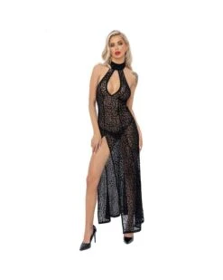Portée avec un string, des talons hauts, et des cache-tétons selon vos désirs, cette robe longue augmentera intensément votre potentiel séduction.