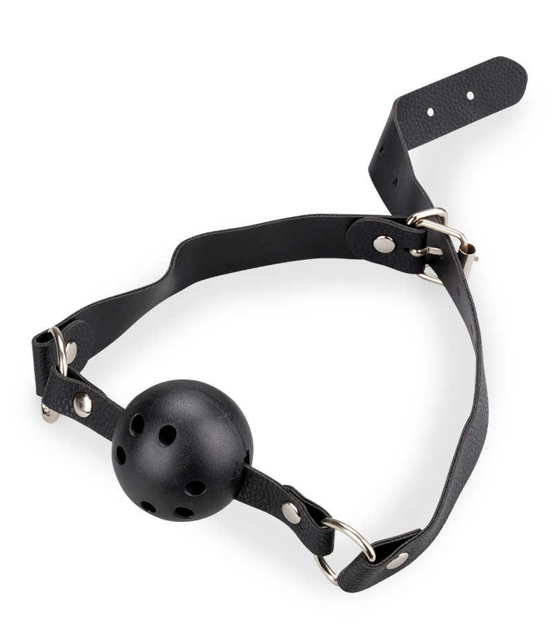 - 1 gag ball avec une boule en PVC d’un diamètre de 4,5 cm. Idéal pour empêcher votre soumis de parler, vous n’entendrez que ses gémissements…