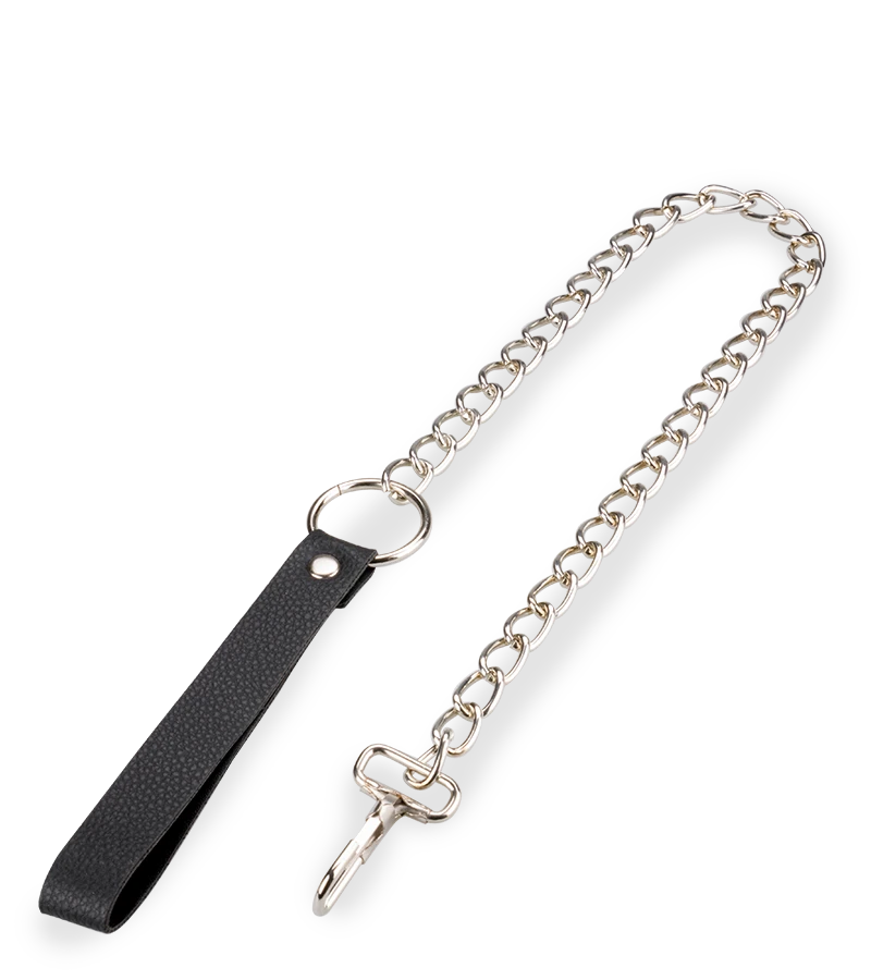 - 1 laisse pour attacher au collier de votre soumis. Elle mesure 63,0 cm de longueur totale (poignée comprise).