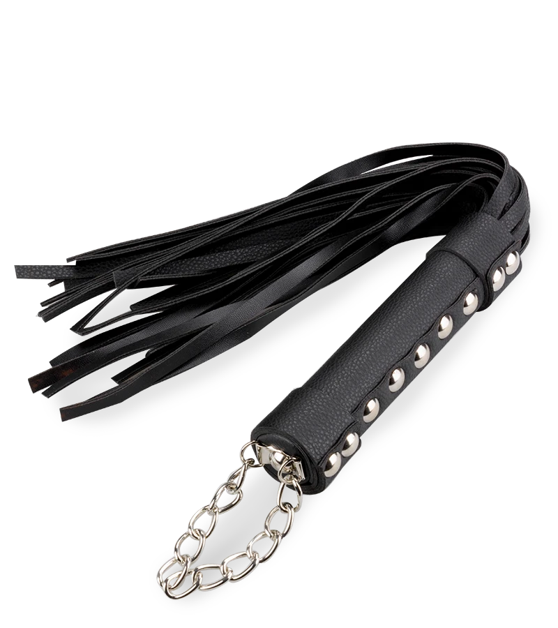 - 1 martinet de 38,0 cm de long (manche compris). Pour corriger votre partenaire ou pour le caresser sensuellement du bout des lanières… À vous de voir.