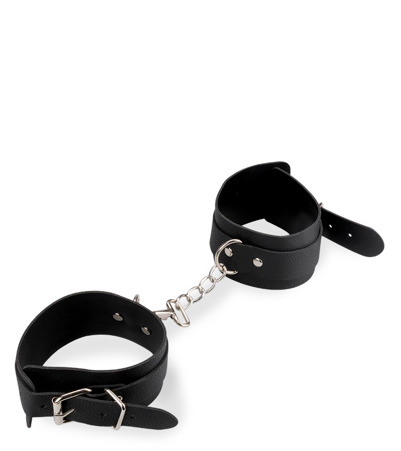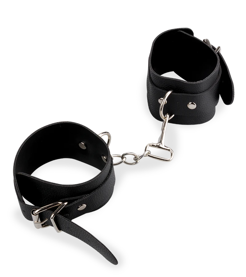 - 1 paire de menottes pour poignets. Pour empêcher les mouvements de votre partenaire. Réglables, elles conviennent pour un tour de poignet mesurant jusqu’à 25,0 cm.