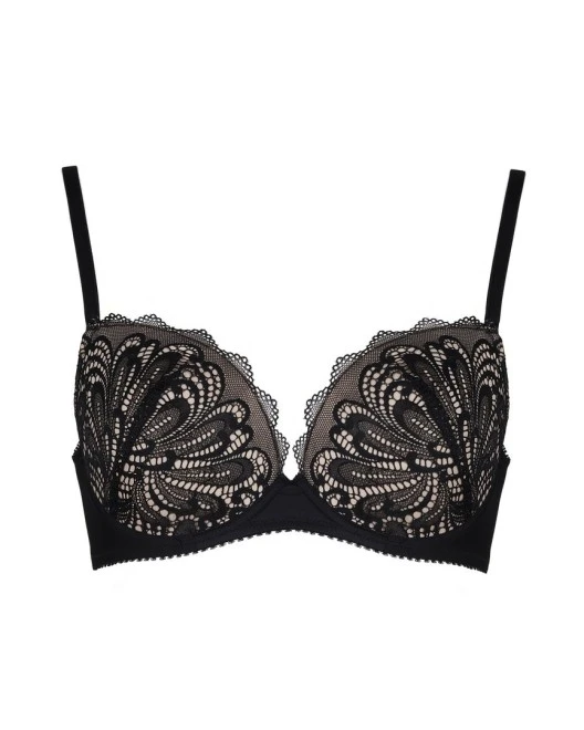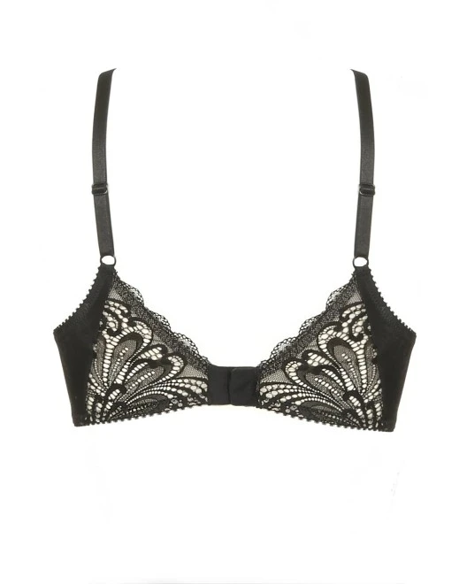 La broderie florale vient redessiner le galbe de votre poitrine tout en sensualité tandis que de la dentelle à croquet suit la courbe de la poitrine et vient embrasser la peau.