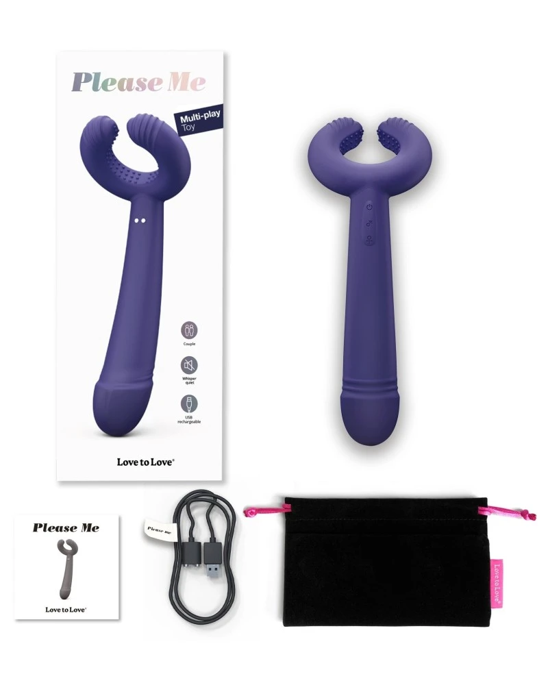 Découvrez le Stimulateur Please Me Love To Love Indigo, un sextoy double usage avec une partie haute courbée et souple pour glisser le long des zones intimes et 8 modes de vibrations pour une stimulation optimale.