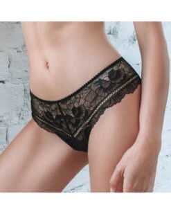 Confectionné à partir de matières somptueuses et subtilement ajourées, ce magnifique string brésilien redessine les courbes avec charme et sophistication.