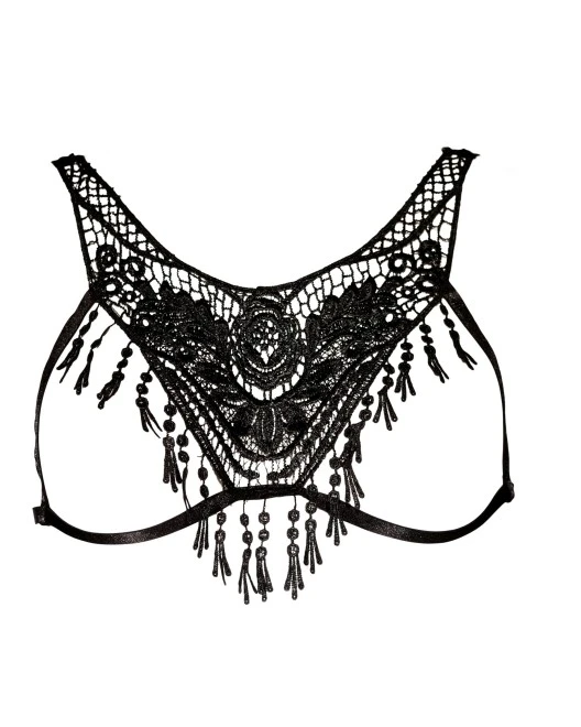 Dévoilez votre poitrine au gré de vos envies grâce à ce top seins nus à broderies et franges, à l’érotisme pur.