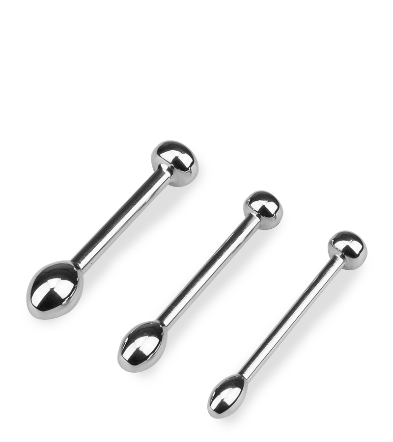 Ces trois plugs en acier inoxydable et de diamètres différents vous permettront de découvrir des sensations très intenses, à votre rythme. Commencez par le plus petit diamètre et passez aux niveaux supérieurs lorsque vous vous sentirez prêt à intensifier l’expérience. Chacun de ses plugs est composé d’une tige pourvue d’une boule allongée pour pimenter l’insertion. Au sommet de chaque plug vous trouverez également une boule d’arrêt, présente pour votre sécurité.