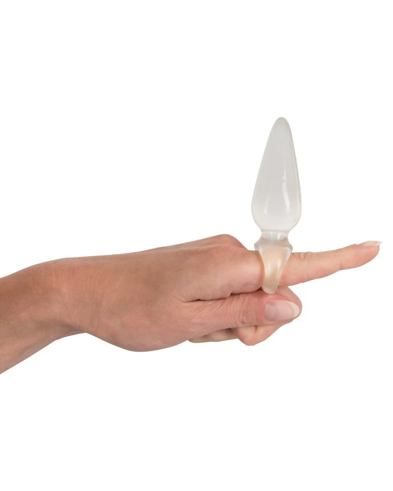 Ce mini plug Finger est un accessoire sexuel de petite taille permattant un plaisir discret à tout moment.Il est composé d’une forme classique de plug de 7cm de long avec une largeur de 2.5cm. La couleur transparente est excitante